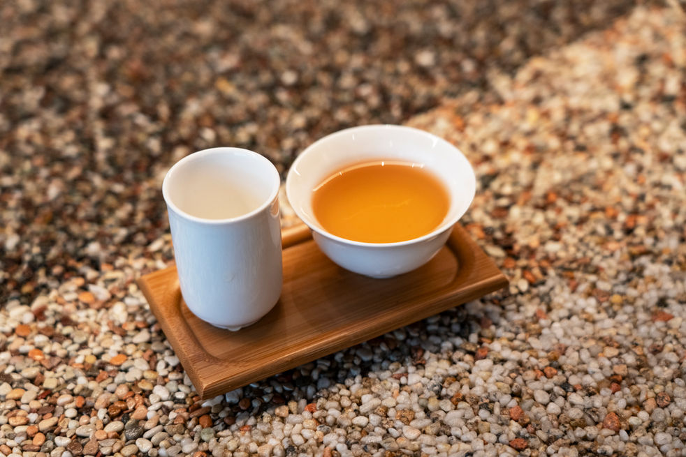 The traditional brewing process involves (1) pouring boiling water into a teapot to warm it, (2) placing tea leaves in the teapot and pouring boiling water over them, (3) pouring (2) into a tea boat with a tea strainer to even out the tea, (4) pouring the tea into an aroma cup, and then pouring it into a tasting cup to enjoy its taste and aroma. By repeating the process from (2) through (4), one serving of tea leaves can yield ten cups of tea, allowing one to enjoy the changes in taste and aroma each time.